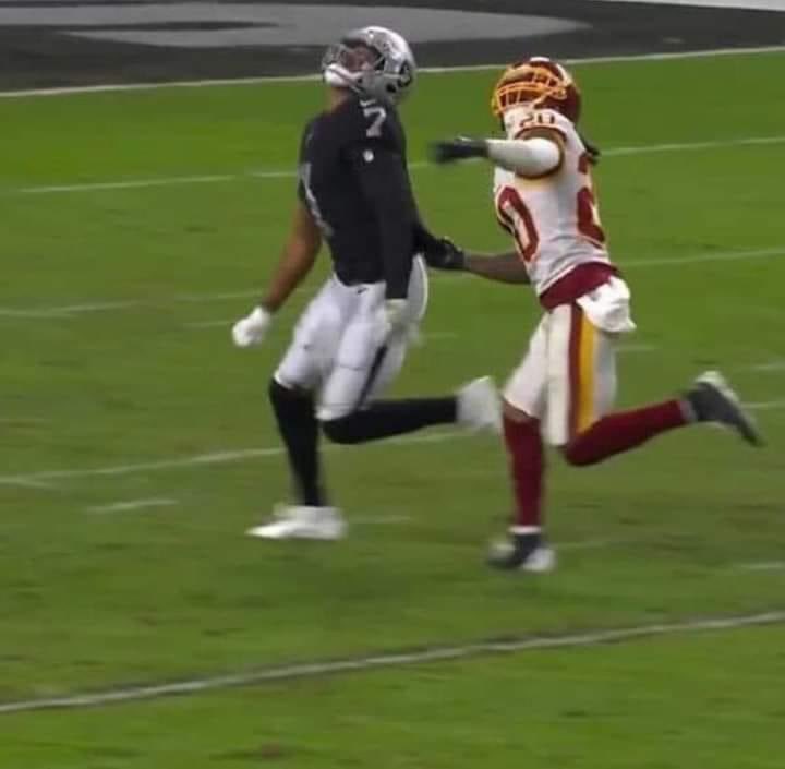 There is a 100% chance that the Raiders get flagged if the situation at the end of the game was reversed and it was a Las Vegas DB grabbing the jersey of a Washington WR. It would fit the formula of both the classic “Raiders vs. Refs” matchup and Sunday’s game, which saw Maxx Crosby get called for roughing the passer for tackling the QB (not to mention the no call on Nate Hobbs getting manhandled on the same exact play) and Johnathan Abram having a sensational defensive play get penalized because of a stupid low tackling rule (the fuck was he supposed to do, get run over by a lineman?). Maybe the NFL looked at last week’s game against Dallas, realized the Raiders (gasp) actually had some close calls go in their favor, and corrected things.