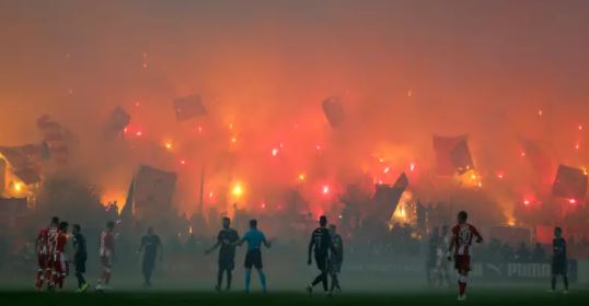 Scenes like this are the norm at Eternal Derby matches, which are literally surrounded by a sea of fire, smoke, and flags. Flares and other projectiles constantly rain fown from the stands onto the areas surrounding the field, and sometimes the field itself. Delays due to smoke or other security reasons are common. It’s the perfect example of controlled chaos, although considering everything I’ve mentioned so far the last thing you might think is that everything is in control. While you’d certainly have a good argument, consider the previous two rivalries we’ve discussed. There have also been fan riots, displays of fire, and the not-so-infrequent instances of things getting out of hand. Now realize that away fans are not allowed at matches, so all of that chaos just goes on with the home squad. But in Belgrade, away fans can attend.