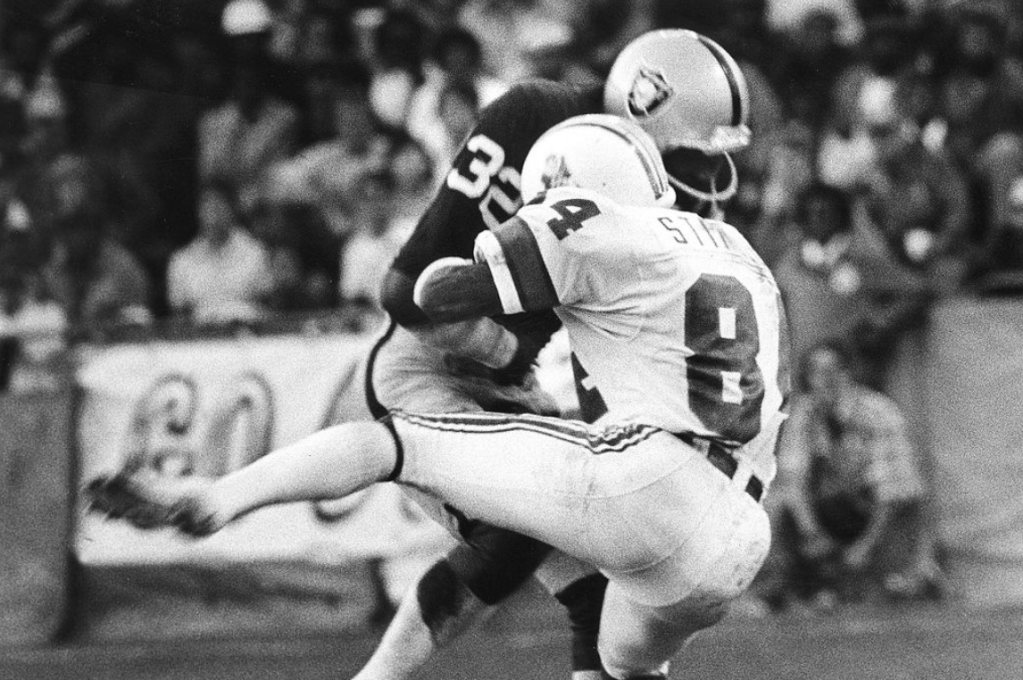 During most of Otto’s 15-year career (entirely spent in Silver & Black), he wore the rarely seen number of 00. That would be symbolic of the fact that there was no one like him. The original Raider didn’t miss a single game in his career (that lasted 2010 games), being one of just three players (along with George Blanda and Gino Cappelletti) to appear in every single game their teams played in the AFL. It’s no surprise that he was also named the starting center of the AFL All-Time Team (along with the NFL 100th Anniversary All-Time Team). Including his five years in the NFL, Otto played in six AFL/AFC title games, winning in 1967 en route to an appearance in Super Bowl II. Those five losses were to the eventual champions, a fact which helped establish the Raiders as one of football’s elite franchises. Otto retired after the 1974 season, just two years before the Raiders won their first Super Bowl (against Minnesota no less). But Otto’s spirit lived on through two other members of the title-winning offensive line: Gene Upshaw and Art Shell. For several years, the trio of HOFers (Otto was inducted in 1980) formed some of the greatest offensive lines in NFL history. All of those years resulted in an AFL title, dozens of All-AFL, All-Pro, Pro Bowl, and All-Star nods, and exactly one reception (which weirdly enough came during a game against the Pittsburgh Steelers that I will no longer discuss).