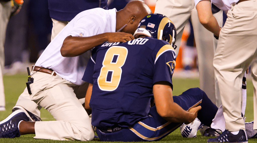Before we begin, I have to acknowledge what was unquestionably the most devastating preseason injury in history, even though it technically didn’t take place in the NFL. In 1963, the AFL’s Kansas City Chiefs signed track star Stone Johnson, who had finished fifth in the Men’s 200M dash in the Summer Olympics in Rome three years earlier. During a preseason game against the Houston Oilers on August 31, Johnson was blocking on a kick return when he dove into an Oilers defender, breaking his fifth cervical vertebrae and being left paralyzed. A motionless Johnson was rushed to the hospital, where despite surgical attempts to help him he passed away eight days later. Johnson’s No. 33 was retired by the Chiefs and he remains the most recent AFL/NFL player to die as a direct result of an on-field injury. No potential on-field impacts of any other injury can possibly be more impactful than literal death and I wanted to make sure the tragedy was at least mentioned here. But I didn’t want to end the list on such a somber note and I can technically use the AFL/NFL distinction to get out of it. RIP Mr. Johnson.