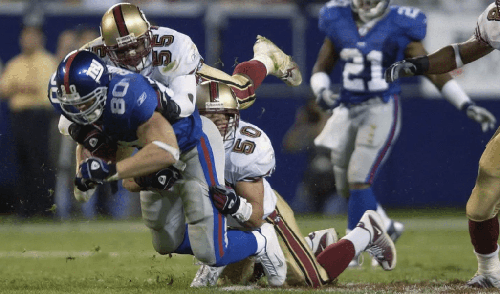 In a lot of ways, the result would be a sign of what was to come for both teams. Although San Francisco would have six Pro Bowlers, they would have a worse record than in 2001. However, the Greatest Show on Turf coming back down to earth allowed the 49ers to claim the first new-look NFC West title. Meanwhile, New York stumbled to a 3-4 record about halfway through the season. That’s when Fassel relieved Payton of play-calling duties — the Giants finished the season 7-2 and snuck into the playoffs as a 10-6 Wild Card. The first round would feature a rematch from the kickoff game, one that would be much more entertaining and memorable. A dropped TD pass by Shockey meant the Giants had to settle for a FG to take a 38-14 lead in the 3rd quarter. The 49ers would proceed to score the final 25 points of the game to win 39-38, though the Giants’ fuck-up on the final play arguably should have led to a penalty on the 49ers and another shot for the visitors. San Francisco would lose to the eventual Super Bowl champion Tampa Bay Buccaneers in the next round, with Mariucci surprisingly being fired three days later (the result of a power struggle between John York and Terry Donahue). Meanwhile, Payton was let go from New York — he would later rebound as an assistant for the Dallas Cowboys, before becoming head coach of the New Orleans Saints and winning Super Bowl XLIV (with Shockey on his roster). As for the kickoff game concept itself, the following year would see another lackluster 16-13 result, with Washington defeating the visiting Jets. However, the impact was tremendous — NFL increased sponsorship revenue by $1.9B over the initial 14 months and the TV rights of the game would be transferred to ABC (before being acquired by NBC as part of their Sunday Night Football package). In 2004, the NFL had the idea of having the defending Super Bowl champs host the kickoff game, which has (mostly) remained in place since then.