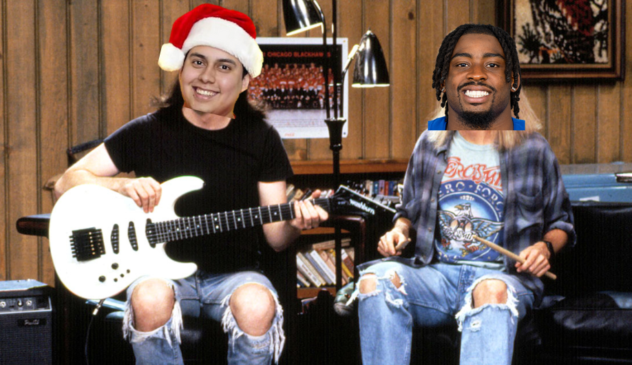 (Wayne & Garth voice) WAYNE’S WORLD! WAYNE’S WORLD! Welcome to Wayne’s World! I’m Wayne Campbell, and with me is Garth Algar. We’ve got a brand new segment called “Fantasy Football Matchup Review” (guitar riff). First let’s check out Hawk Tua. Name? SUCKS! (guitar riff) Jonathan Taylor (25 points)? He was good. Zach Charbonnet (24 points)? He was good. Sam Darnold (23 points)? Excellent! The Packers defense (21 points)? They’ve really stepped up to allow Green Bay to take advantage of an easy slate of games, weather the storm without Jordan Love and emerge as a true contender in the NFC, where the top dogs from last season appear to be on shaky ground. (guitar riff) Now, let’s go to Ewing! Three Eyed Ravens? Barely seen it. Derrick Henry (29 points)? We’re not worthy! The Jets defense (16 points)? It was good. Brandon Aiyuk? Sucked and not worth the money. Jaylen Waddle? Sucked and may be doomed without Nick’s team’s namesake. That’s all from us! (guitar riff) Party on, Wayne! Party on, Garth!