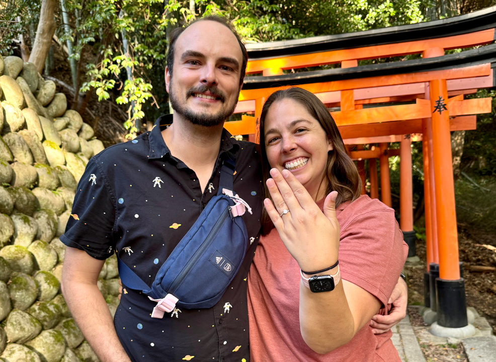The proposal took place on November 4th at the Fushimi Inari Shrine in Kyoto, Japan. Allison was completely surprised, as Kyle popped the question during a spontaneous photoshoot that Allison and her coworker had suggested. The couple has been overwhelmed by the outpouring of love and support from friends and family since sharing their news.