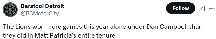 I don’t know if I’ve ever seen a more fun team to watch than the Detroit Lions. They might be too injured on defense to make or win the Super Bowl, but goddamn I’m rooting for them to finally win it all. Also, this might be their last season with Ben Johnson, who’s going to make a truckload of money as a head coach next season.