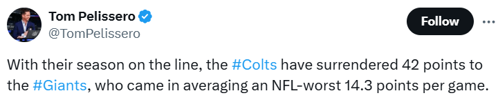 This might be a future newsletter deep dive, but the Indianapolis Colts have been an incredibly underrated franchise in terms of fucking things up. Peyton Manning and that Super Bowl XLI win have done a lot of heavy lifting, and that title is nearly 20 years old at this point.