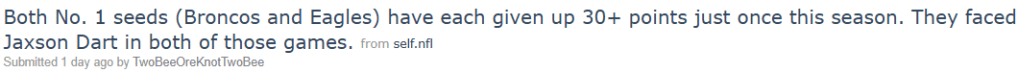Much like with the Epic League, I have no idea who’s actually good in the NFL (apart from Jaxson Dart, obviously). Unproven contenders are being led by young stars, reliable teams are anything but that, and every contender seems to have a major weakness. If the regular season ended today, the Philadelphia Eagles and Denver Broncos would be the No. 1 seeds in their respective conferences. Neither team has looked good let alone championship caliber on offense, with the defenses straight up carrying them to their respective records. In these circumstances, you tend to trust the teams who’ve been there before. That would be the Eagles, who remain NFC favorites despite their anemic offense (A.J. Brown get your fucking shit together, please). But in their offensive struggle, perhaps an appreciation for one key player can be found, at least according to a graphic from Sunday night.