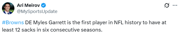 Also having an insane year: Myles Garrett, who will probably claim another DPOY honor this season. I guess he has a bit of an advantage, being able to use three legs and all.