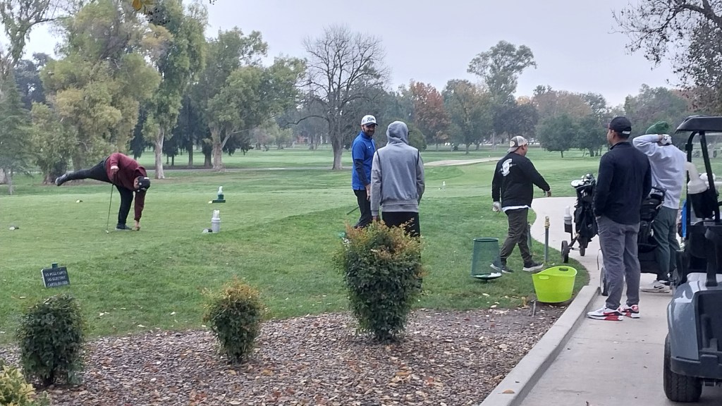 For those of you who couldn’t make it this past Thanksgiving, Jimmy once again gathered a group to play a round of holiday golf at Land Park. The last time we were all out there for a holiday was the famous Christmas round where Riaz won it all the same day he got the last place trophy and I managed to beat Ewing in a round of golf. While Ewing couldn’t make it out to attempt to get his revenge, the field was as follows: me, Jimmy, Chriss (who, due to the cold, wore a face that made Jimmy call him “ICE” for the entire day), Nick, Riaz, and Richard. In addition, we had Jimmy’s friend Nijal (an actually good golfer) and the surprise return of Gee, who ended up arriving late and forcing Richard to join the first foursome as a result. In the end, the groups were as follows: