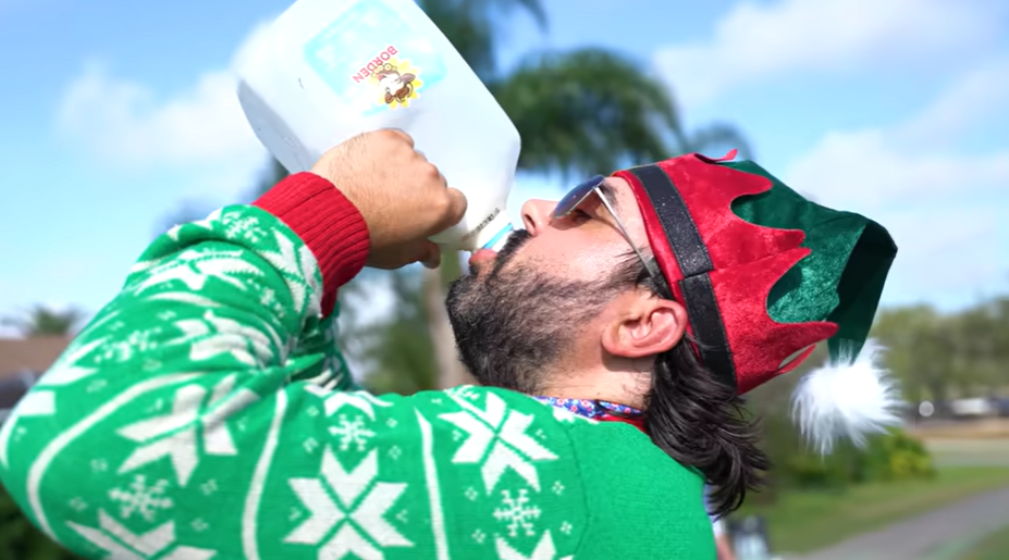 For one of their Christmas specials, the Bob Does Sports crew took a page out of Santa Claus’ playbook and went for the milk and cookies. Specifically, 50 cookies and three gallons of milk in total. To be fair, these cookies aren’t exactly the biggest and for the length of nine holes of golf, 16/17 per person isn’t as big of a challenge as you’d think. But here’s the thing: we’re now entering dessert territory. Eating a lot of lunch/dinner food isn’t exactly abnormal. But trying to put down a lot of desserts is a tough task. Then there’s the milk — a lot of it. You also need to get all of it down before it gets warm and undrinkable, which means you’d have to also eat the cookies quickly or deal with a lot of dry mouth once the milk’s gone. Either way, it’s not easy.