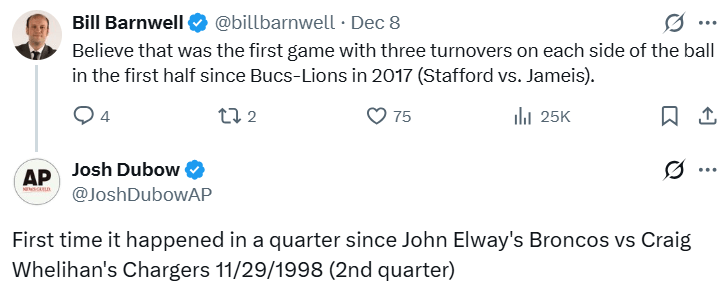 For the Krispy Kritters, this season has been a mixed bag, one that ended with him barely scraping into the playoffs. For Richard, previously two-time reigning last place finisher, that’s a hell of an improvement. Things have been largely boom or bust for Richard, where he either scores a lot and (mostly) wins or scores a little and loses. But Richard got enough wins and is unexpectedly three more wins away from winning the title. Dak Prescott and the Cowboys’ pursuit of a playoff spot will be key to Richard’s future success, as are the hopes of Jameson Williams, Bijan Robinson, Kenneth Walker, Tyler Warren, Terry McLaurin, and the Rams defense being consistently good instead of inconsistent. It would complete quite a remarkable turnaround.